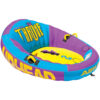 背もたれ付きのシートに深く腰掛けることができる、ソファ型の2人乗りトーイングチューブです。リクライニング形状の座席が体を包み込むようにホールドし、旋回時や波を越える場面でも姿勢を保ちやすい設計になっています。