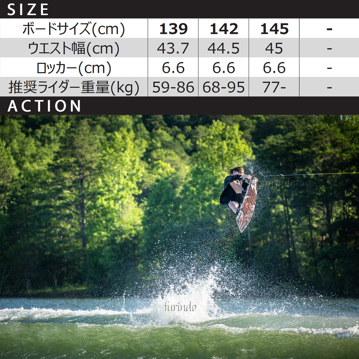 初めてウェイクボードに挑戦する方から、トリックを極めたい中級・上級者まで、誰でも扱いやすく楽しめるバランスの取れた1本です。